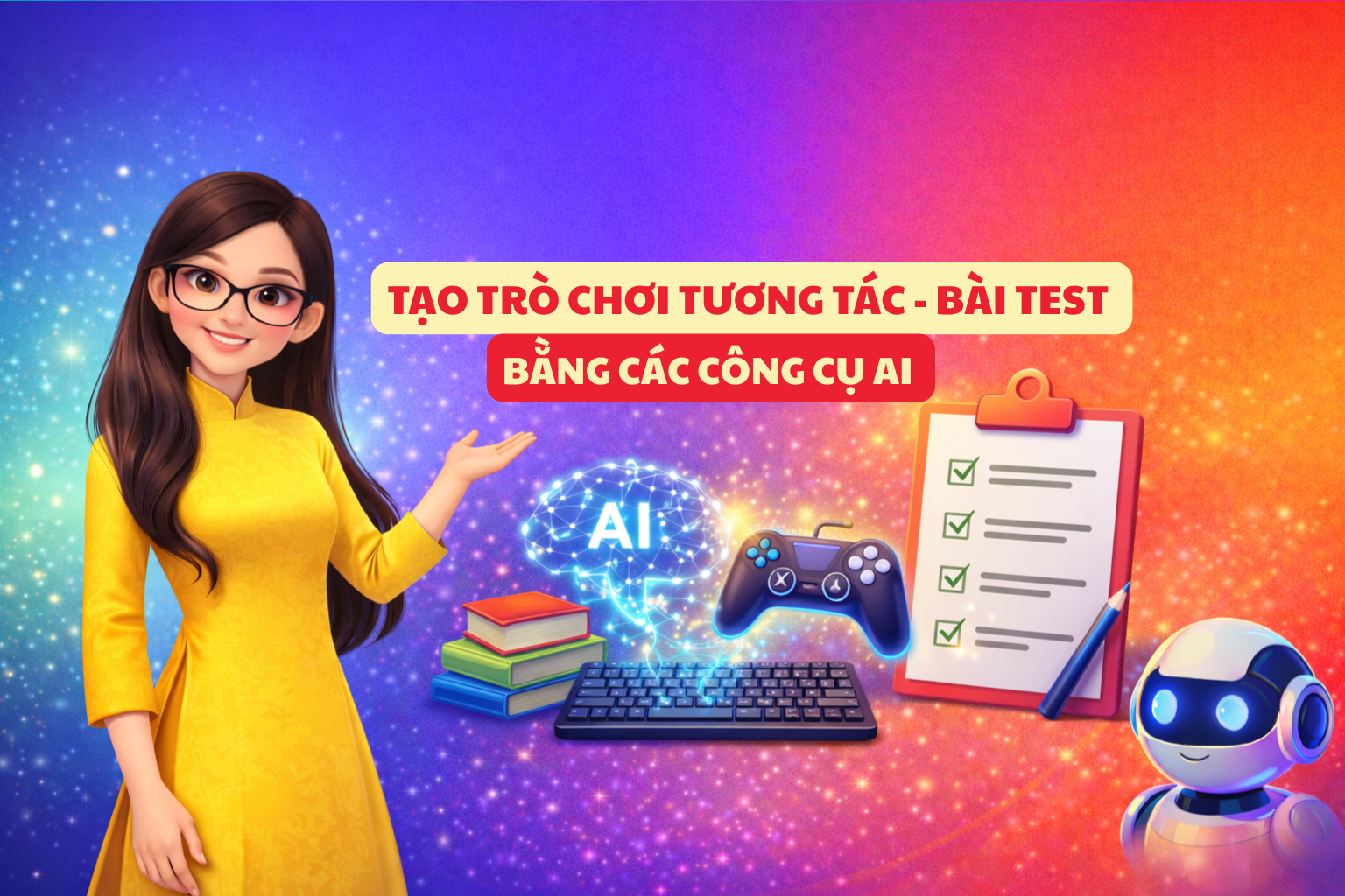 Khóa học Ứng dụng AI thiết kế Trò chơi & Bài kiểm tra tương tác là chìa khóa giúp thầy cô biến những giờ kiểm tra căng thẳng thành những hành trình khám phá tri thức đầy hào hứng.